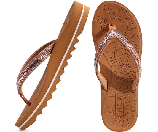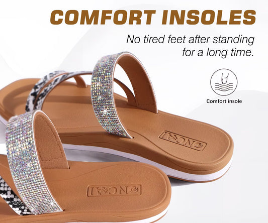 ONCAI Flip Flops for Women, Beach Thong Sandals with Arch Support, Dressy Rhinestone Comfortable Yoga Mat and Non Slip Rubber Soles for Summer US Size 5-11