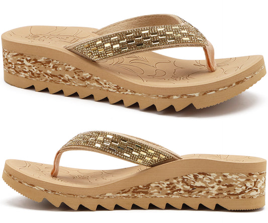 ONCAI Women's Wedge Flip Flops with Rhinestone,Recovery Dressy Walking Sandals for Women with Comfortable Arch Support Cushion Yoga Mat Summer Slip On Rubber Soles (Size 5-11 US)