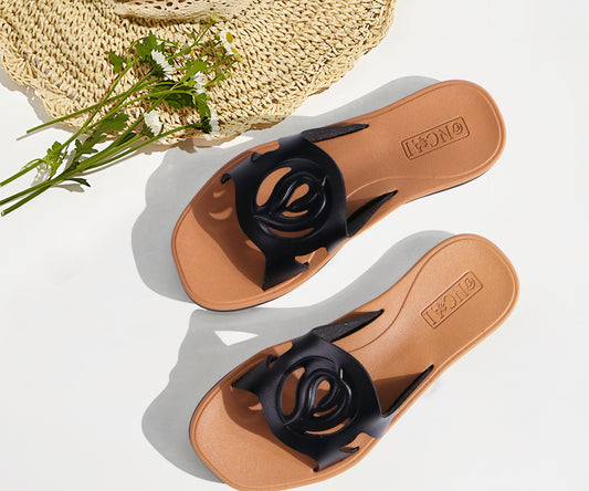 ONCAI Women's Flat Sandals Fashion Square Open Toe Slide Dressy Sandals for Woman Soft Cushion Vegan Comfortable Summer Slip On Casual Walking Outdoor Rubber Sole(US Size 6-11)