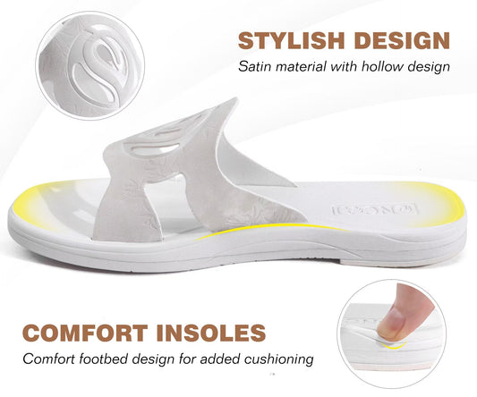 ONCAI Women's Flat Sandals Fashion Summer Dressy Sandals Casual Beach Flat Sandal For Woman Square Toe Comfortable Cushion Footbed Slip On Ladies Slides Women Size 6-11